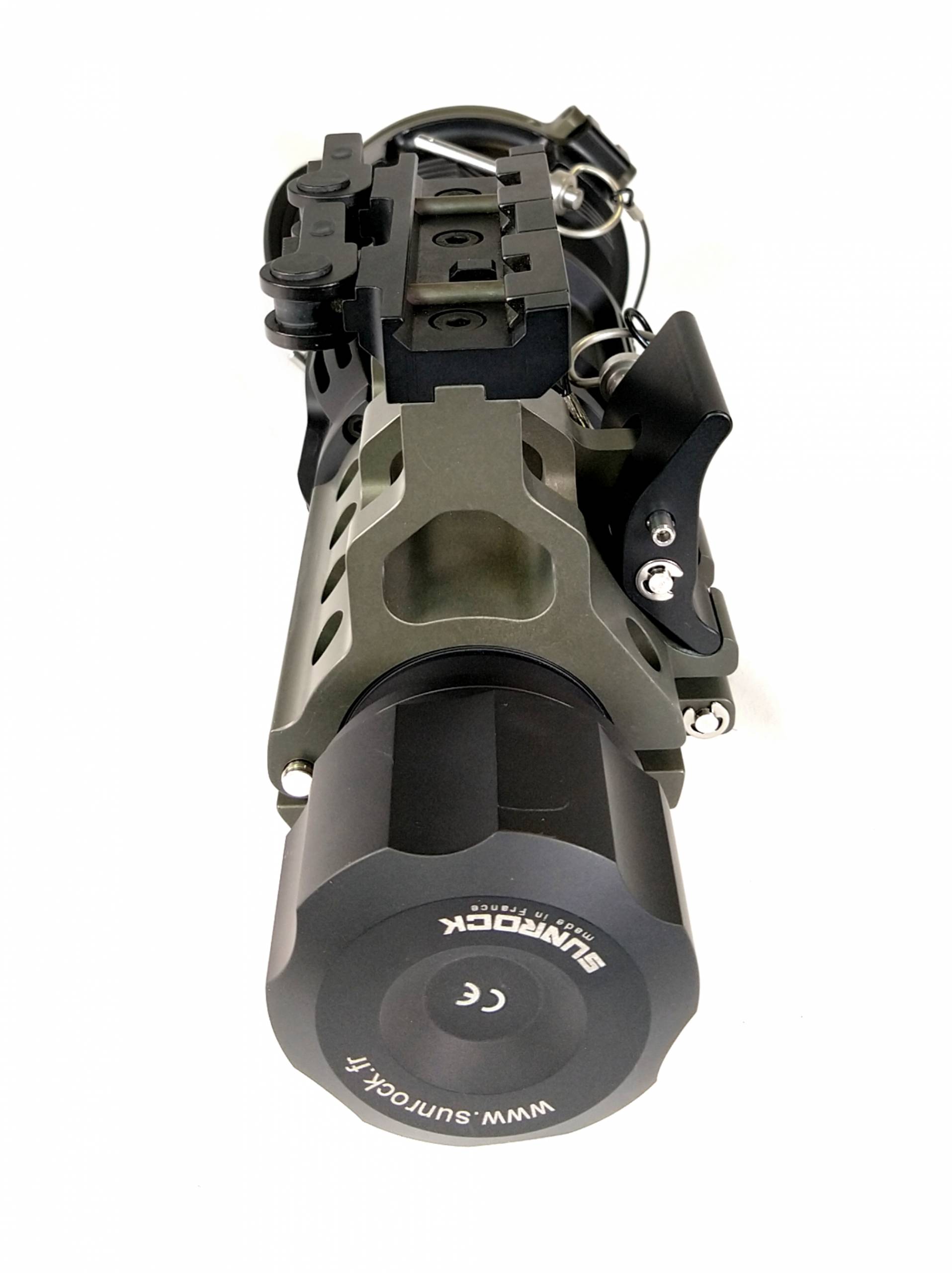 Le Night Reaper peut également se monter sans son compartiment batterie interne (interface de montage MK2). Les interfaces de montage peuvent être conçues sur mesure pour des besoins personnalisés. Un montage avec une poignée (en option) facilite l’utilisation en mode portatif.