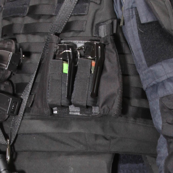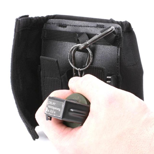 • 2 mousquetons pour accrocher les anneaux des goupilles de grenades et les stocker prêtes à être lancées