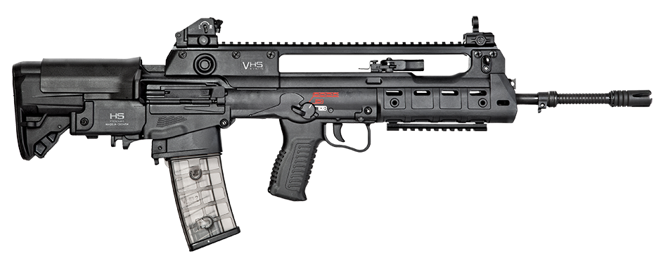 Fabriqué en acier et polymère et de conception compacte grâce au système Bullpup, le VHS peut être utilisé en espace confiné tout en conservant un canon plus long que sur les systèmes traditionnels.
