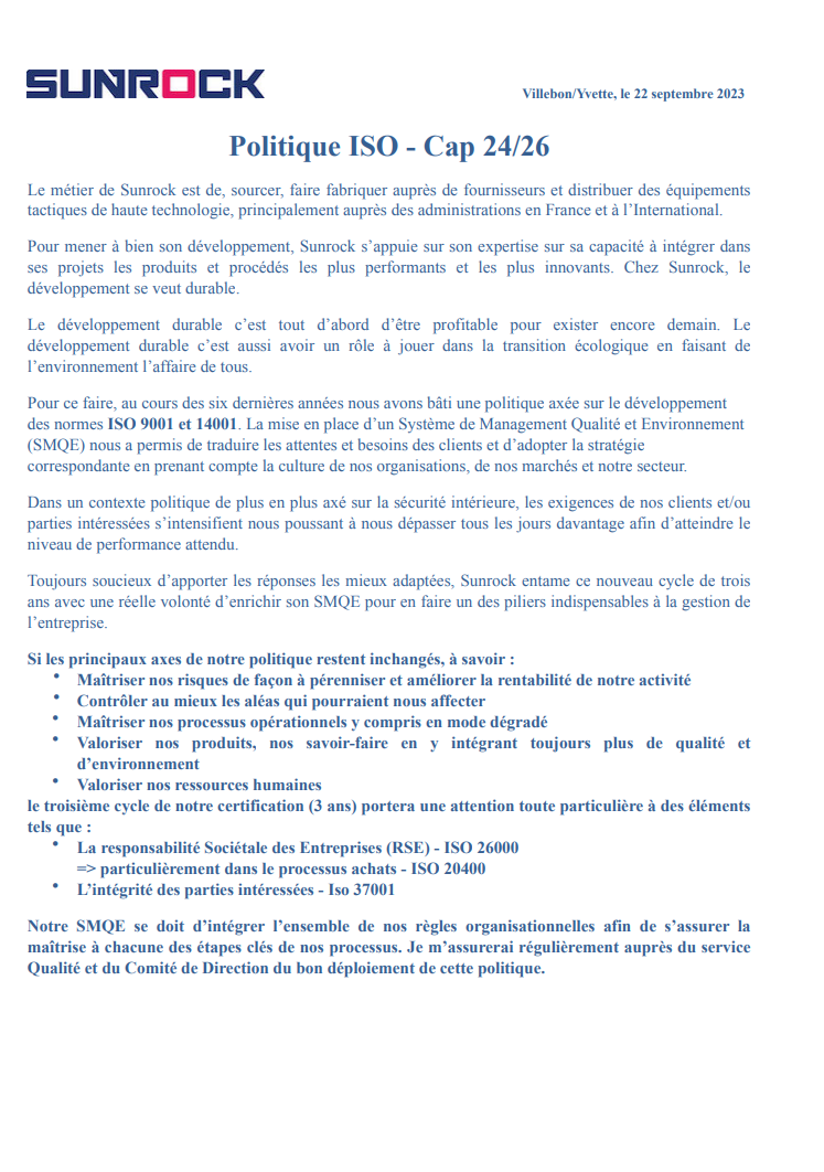 SUNROCK vise à l’amélioration continue via des mesures préventives et correctives.